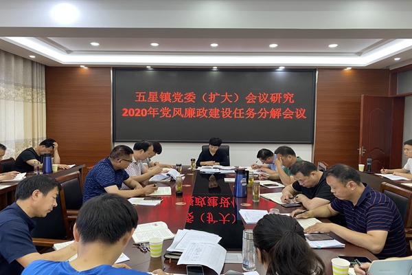 为进一步加强党风廉政建设,促进党风廉政各项任务落实,五星镇召开党委(扩大)会研究2020年党风廉政建设任务分解工作,细化工作措施,把责任落到实处,促推各项工作的开展。