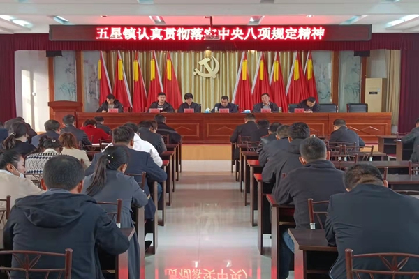 为深入贯彻落实中央八项规定精神,扎实推进作风建设,11月1日,五星镇召开贯彻落实中央八项规定精神会议,镇村全体干部参加。