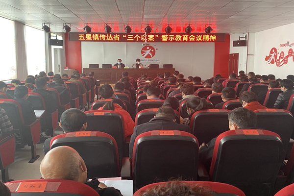 近日,五星镇召开会议传达省“三个以案”警示教育会议精神,会议由镇党委副书记靳培俊主持,镇全体干部、各村“两委两干一员”参加会议。