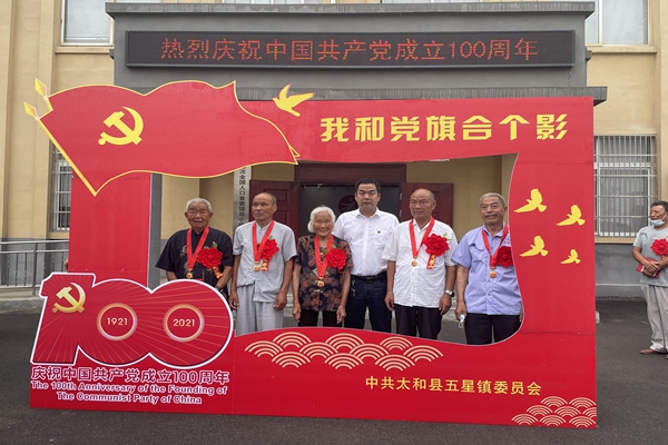 结束后所有党员干部参观了党史学习教育建党百年图片展,并进行“我和党旗合个影”拍照打卡活动,用镜头定格信仰,记录珍贵瞬间,向党的百年华诞献礼!(五星镇 王梦影)