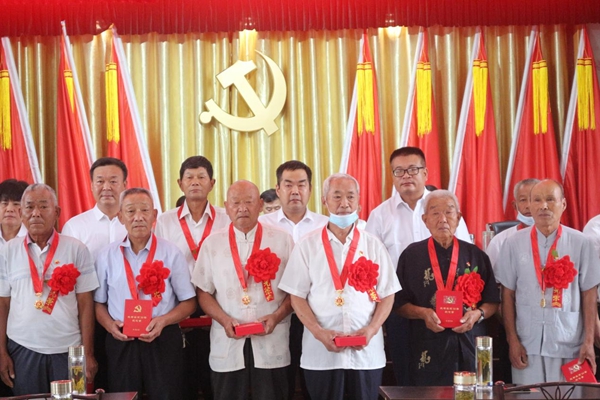 大会在雄壮激昂的国歌声中拉开了序幕。会上,由镇党委书记张振斌带领全体党员进行了重温入党誓词和新发展党员宣誓仪式。镇党委班子为老党员代表颁发“光荣在党50年”纪念章,为受表彰的优秀共产党员、优秀党务工作者及优秀队组长颁发荣誉证书。