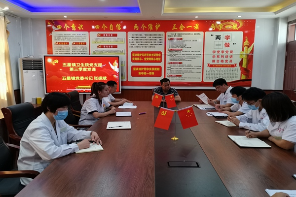 9月22日,五星镇党委书记张振斌为卫生院党员干部上了一堂党史学习教育专题党课,卫生院全体党员干部参加。