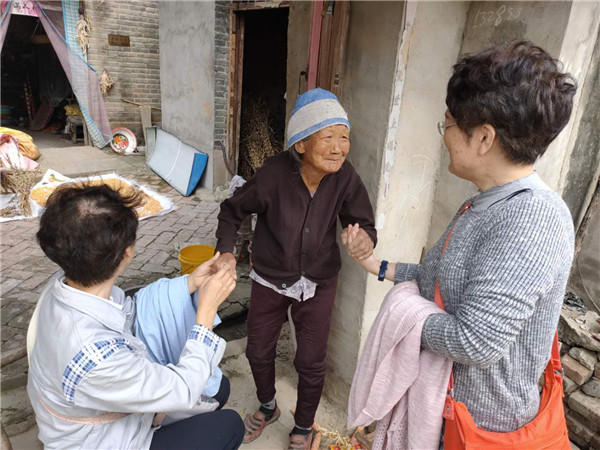 欢迎仪式后,由各村带队接至村里,老知青们拜访曾经一起工作的老队友、老邻居,与他们共叙插队下乡时的时光。在陈寨村,老知青周基玉和王星慧来到当年插队的赵庄生产队长邹喜林的家,看望其老母亲,拉着老人的手,老知青们激动的回忆着当年艰苦生活条件下,乡亲们对自己的各种照顾,是一辈子忘不了的情谊。