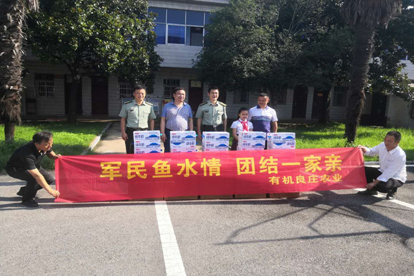 在“八一”建军节当天,双浮镇党委书记董辉、武装部长何磊、团委书记邹傲猛和双浮镇爱心企业有机良庄负责人一行冒着高温酷暑走访慰问县人武部官兵,向他们致以节日问候和祝福,并送上了慰问品。