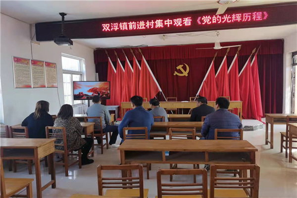 为推动党史学习教育走深走实,扎实开展基层党建工作,10月28日,双浮镇前进村组织村“两委”干部在会议室收看由中央组织部、中央广播电视总台联合录制的《党课开讲啦》第一期《党的光辉历程》。