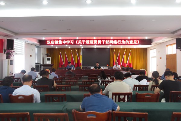 为使全镇党员干部带头严格规范网络行为,营造清朗的网络环境,5月10日上午,双庙镇在镇四楼大会议室组织集中学习《关于规范党员干部网络行为的意见》,镇机关、事业全体党员干部参加。