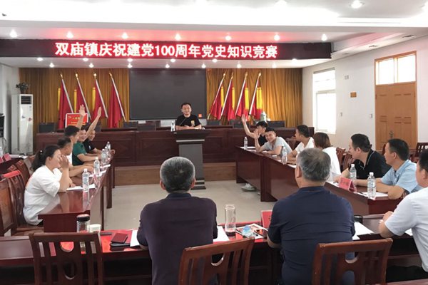 为庆祝中国共产党成立100周年,巩固党史学习教育成果,6月28日上午,双庙镇组织镇村党员干部在四楼大会议室开展党史知识竞赛。