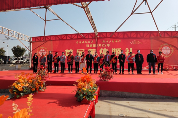 阳春三月、春暖花开,为稳步推进婚俗改革工作,倡导移风易俗新风尚,隆重纪念“三八”国际劳动妇女节,2022年3月8日,在美丽的茨河畔边,双庙镇举办首届集体婚礼暨先进典型表彰大会,县政协副主席、农业农村局局长李永军,县民政局党组书记、局长李英明,县妇联副主席李慧慧出席活动,双庙镇党委书记黄林,党委副书记、镇长王龙等党政人大全体班子成员参加活动。