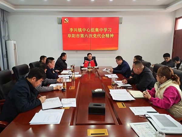 10月25日,李兴镇召开党委中心组学习会议,学习传达了阜阳市第六次党代会精神。会议由镇党委书记李震主持,镇宣传委员于坤恒带领学习,全体班子成员参加。