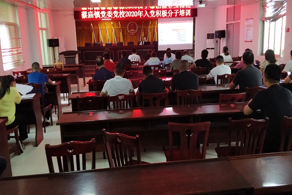 为进一步提高入党积极分子的思想政治素质和政治理论水平,明确入党目的,端正入党动机,近日,蔡庙镇党委党校开展2020年入党积极分子培训,培训会由镇组织委员张莉主持。