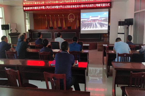9月3日上午,蔡庙镇组织机关党员干部收听收看纪念中国人民抗日战争暨世界反法西斯战争胜利75周年向抗战烈士敬献花篮仪式。