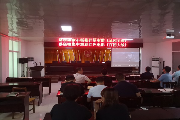 为庆祝中国共产党成立100周年,扎实开展党史学习教育,蔡庙镇用红色影片讲述红色故事,组织镇全体干部集中观看电影《百团大战》,重温党的光辉历史。