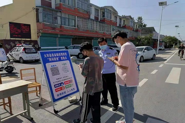 该镇在辖区内设立4个“两码联查”查验点,安排专人负责,要求进出人员戴口罩、量体温、进出扫码。