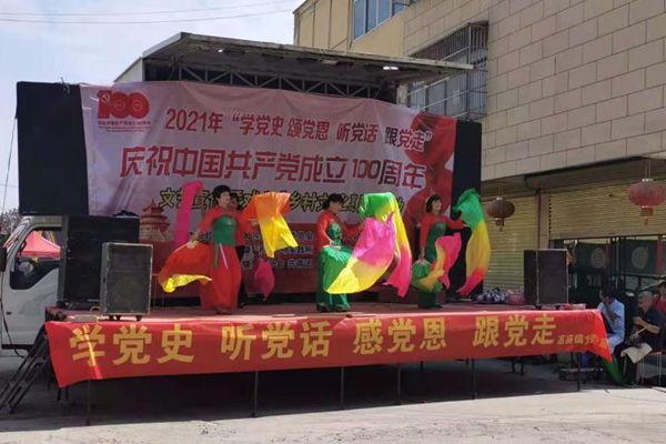 “党史+文艺演出”。通过开展文艺演出活动,为观众献上内容丰富的文化盛宴,通过红色歌曲和戏曲等艺术形式诉说党的百年历史,让农村党员、群众在寓教于乐中学习党史,激发爱党爱国之情。