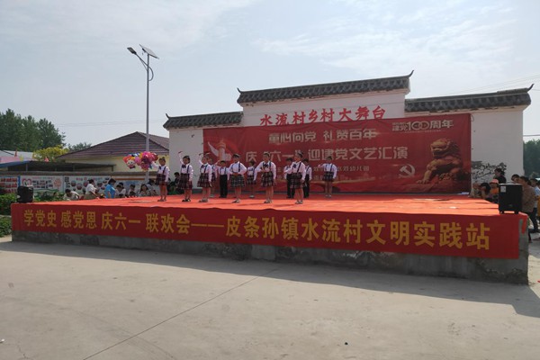 为庆祝中国共产党成立100周年,6月1日上午,皮条孙镇水流村文明实践站组织开展“童心向党 共筑梦想”学党史、感党恩、庆六一暨建党100周年礼赞百年活动。