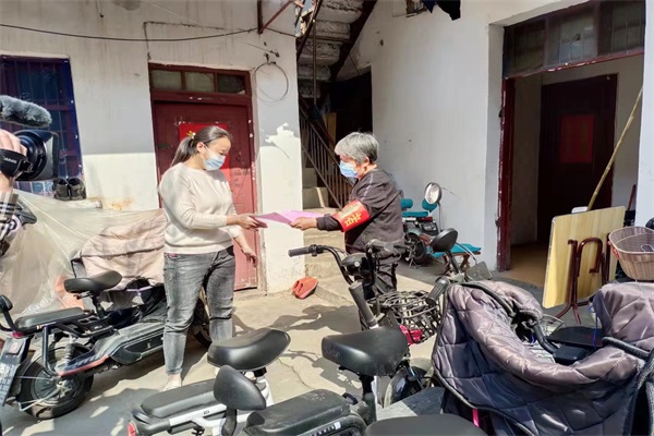 城关镇复兴路社区贾庄70多岁的党小组组长、居民组长孙秀华,在疫情防控工作中,一直走在前,发挥着一名党员的先锋模范作用。为做好辖区居民安全防范工作,她积极到小区楼道内挨家挨户进行“敲门行动”,张贴温馨提示卡、疫情防控倡议书,要求省外返乡人员积极到社区报备,落实居家隔离措施等,并到居民家中发放小区出入证,提醒他们少外出,病毒不认人,没有局外人,做好个人健康安全防护。她还手持小喇叭,动员居民去进行核酸检测,嗓子都喊哑了,说不出话来,她就到现场进行秩序维护;对于年老体弱、患病卧床、行走不便的居民,她就带着医护人员到他们家中进行核酸采集。