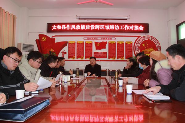 为贯彻落实市委、县委“优良作风建设年”“产业项目建设年”工作部署,推深做实太和县直机关作风效能建设,在市直工委的大力指导支持下,12月16日-17日太和县直效能办配合阜南县直工委一行6人,组成3个联合暗访组,对太和县94家县直及中央、省、市驻太单位出勤考勤、工作纪律、服务态度、办公环境等作风效能建设情况进行全覆盖暗访,共发现作风效能建设问题线索70余件,并一一给予处理或整改,收到了较好社会效果。