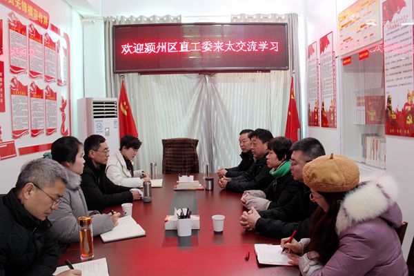 2021年1月7日,阜阳市颍州区直机关工委书记李泓浩一行至太和县直工委就机关党建及作风效能建设工作进行交流学习。太和县直工委书记王道峰及部分班子成员陪同。