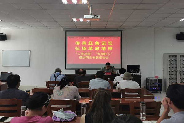 随后,“最美退役军人”“人民功臣”“太和好人”杨杰同志为大家作专题报告。杨杰与大家畅谈自己的军旅生涯,特别分享了参加对越自卫反击战的经历。当他讲到当时艰苦卓绝的生活条件和危机四伏的战斗环境时,同志们的心也被深深地牵动着。大家纷纷感叹和平来之不易,要倍加珍惜今天的美好生活。