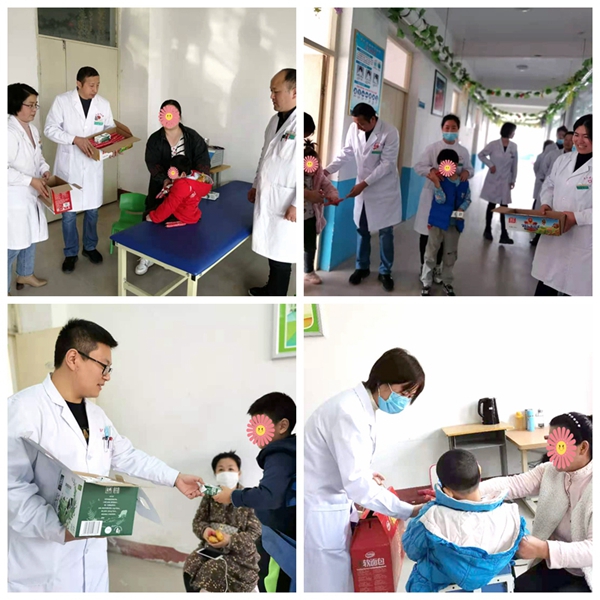 2020年11月10日下午,太和县中医院住培支部全体党员在支部书记吴瑞、副书记刘桂荣的带领下走进太和县残联特殊儿童康复中心,看望、慰问特殊儿童,发放慰问品,给残疾特殊儿童们带去了亲切的关怀。