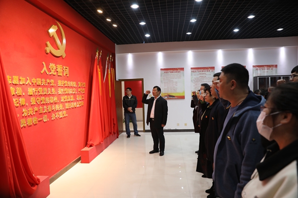 参观结束后,在党支部书记李灿章的带领下,全体党员面向党旗庄严肃立,举起右手,重温入党誓词,铭记作为一个共产党人不忘初心的历史使命。