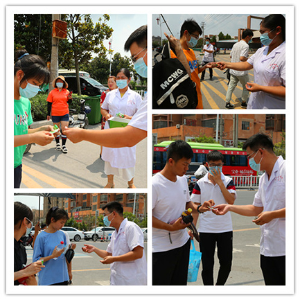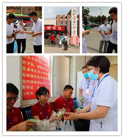 新冠肺炎疫情打乱了所有人的生活,但高考冲刺依然摆在面前,莘莘学子怀揣着梦想,将绽放在这热情似火的七月。该院住培医师支部书记、肺病科副主任吴瑞,支部副书记、组织人事室主任刘桂荣驻点八中开展防疫工作,支部党员王宪、王敏在考场外为考生们加油打劲,为他们准备了藿香正气水、清凉油金银花露、仁丹、十滴水及中药香囊等防暑药品,为高考学子们送去了中医药健康服务,有效保障了考生及送考家长的身体健康,成为高考场外一道靓丽的风景线。
