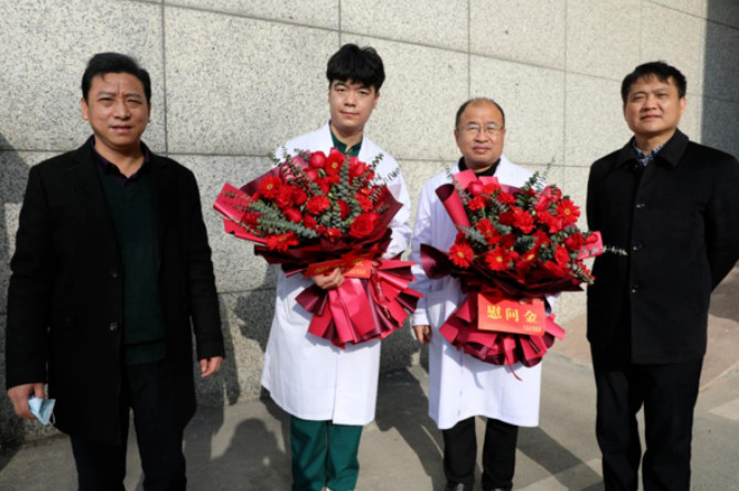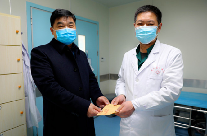 一声声问候温暖人心,一声声祝福传递真情。随后,潘欣、刘磊先后来到援市二院抗疫英雄焦常新、吴瑞处,为他们送去春节慰问金及《中共中央关于制定国民经济和社会发展第十四个五年规划和2035年远景目标的建议》辅助读本。他叮嘱大家,在紧张工作的同时务必做好自我防护,确保身体健康安全,同时传达了医院党委对大家的关心与关爱。
