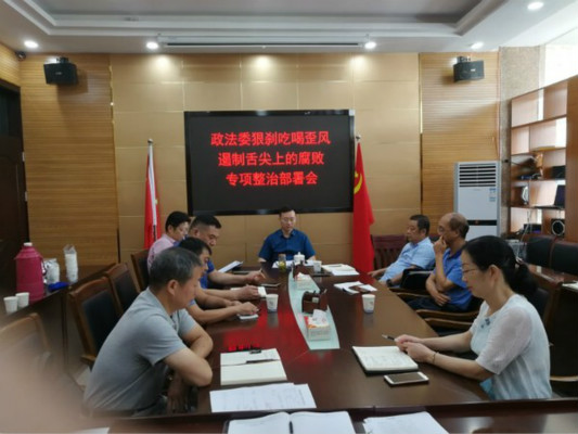8月26日,政法委召开狠刹吃喝歪风遏制舌尖上的腐败专项整治部署会,县委常委、政法委书记张仲弢主持会议,县纪委监委派驻政法委纪检监察组组长周大庆、委机关全体工作人员参加会议。
