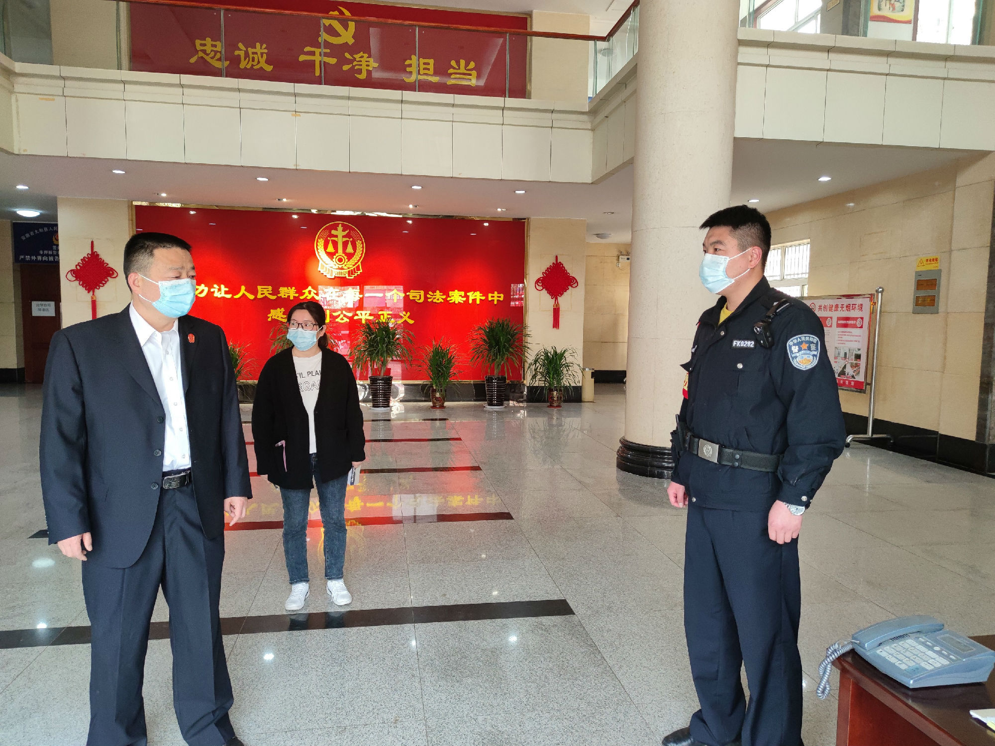 田金刚对综合行政楼、安检大厅、诉讼服务中心等重点区域进行了督导检查,叮嘱安保人员一定要提醒外来人员正确佩戴口罩,将清洁消毒、测量体温、查验健康码和核酸检测证明等措施落实到位,同时叮嘱干警们要注意自身安全,提高自身防范和防护水平。他强调,当前疫情防控形势严峻,太和法院案件数量多、进出法院人员杂,全院干警一定要提高思想认识,严格落实各项防控措施,确保法院各项工作安全有序开展。