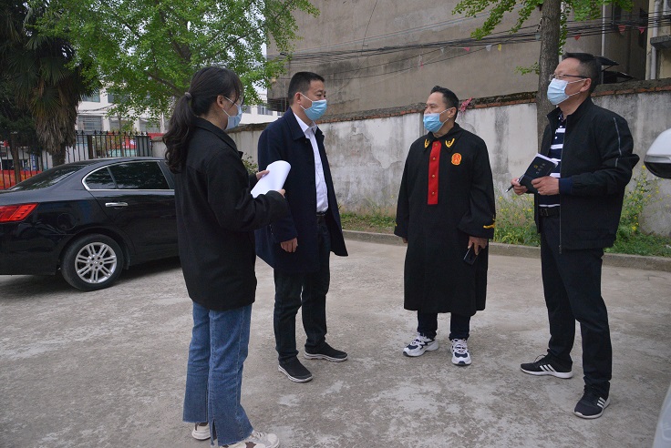 为有效满足疫情防控期间人民群众司法需求,严防在疫情防控、审判执行、司法作风、队伍管理等方面出现问题,2022年4月14日,太和县人民法院党组成员、驻院纪检监察组组长田金刚,审判管理办公室(研究室)主任李善亚带队前往镜湖中心法庭、大新法庭、五星法庭、赵庙法庭进行审务督察并检查疫情防控措施落实情况。