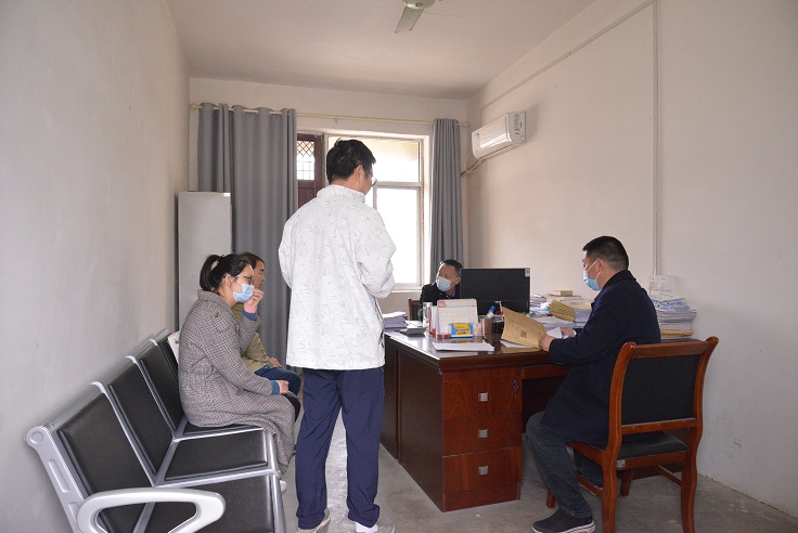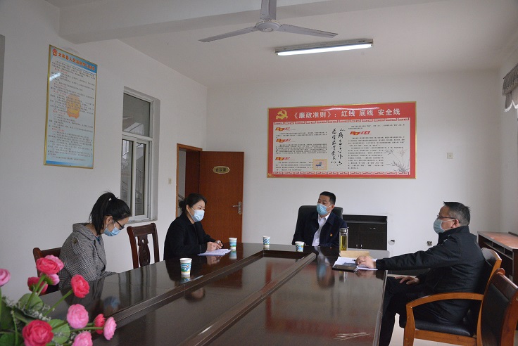 赵庙法庭负责人赵磊及李兴法庭庭长王龙向田金刚一行汇报了近期报结案件的计划和打算。