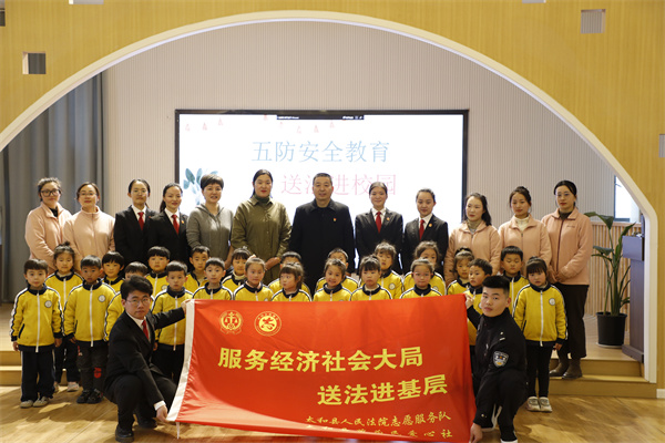 为加强校园法治教育,增强儿童自我保护意识,守护校园安全和儿童安全,2023年3月20日,太和县人民法院走进太和县县直幼儿园沙河路分园开展“五防安全教育,送法进校园”普法宣传活动,院党组成员、驻院纪检监察组组长田金刚带领太和法院志愿服务队参加活动。