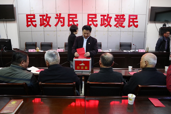 闪琪宣读了党总支换届选举办法,通过监票人、计票人名单。与会全体党员以无记名投票的方式差额选举民政局新一届党总支委员会委员5名。在会后召开的新一届党总支委员会第一次全体委员会上,选举产生书记、副书记、确定了其他委员分工。