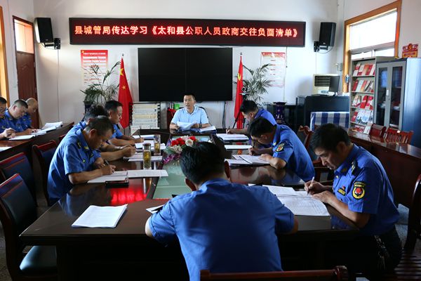 9月2日下午,太和县城管局召开专题学习会,组织局属各股室、二级机构负责人集中学习《太和县公职人员政商交往负面清单》。