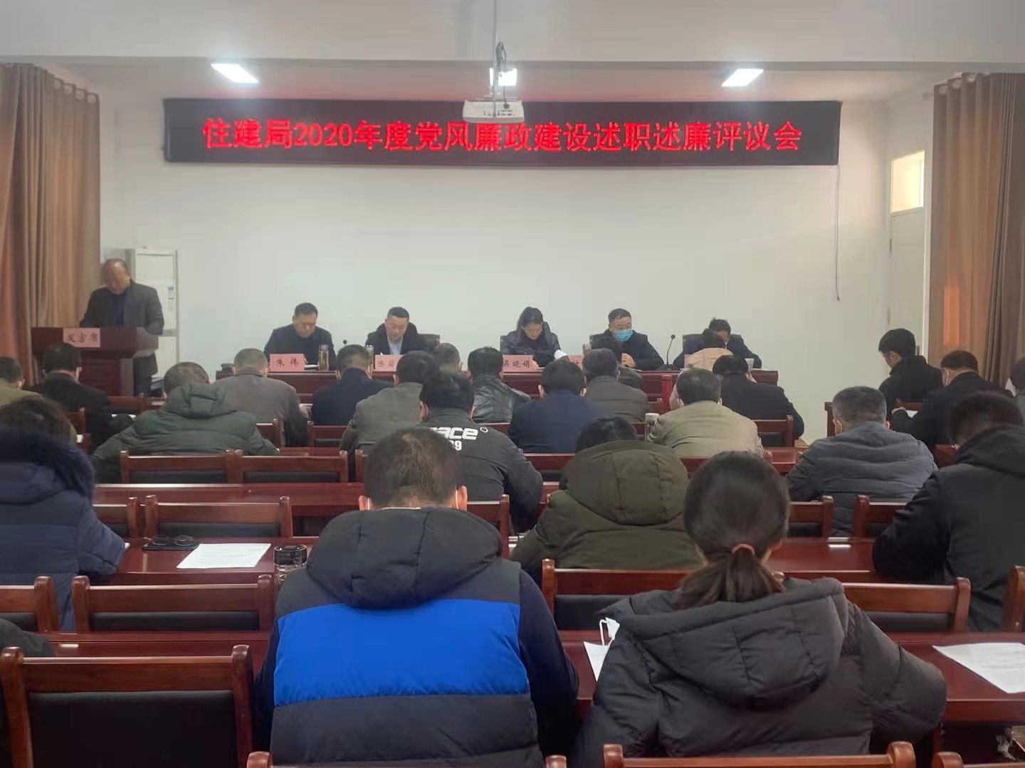 近日,太和县住房和城乡建设局召开2020年度党风廉政建设述职述廉评议会,局党组书记、局长、人防办主任吴晓娟主持会议,局机关全体工作人员、局属各单位主要负责人共计70余人参加会议。