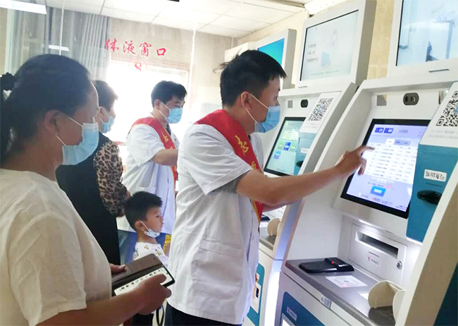 各位志愿者分别在门诊大厅缴费办卡、取药窗口单位以及各楼层诊区、彩超、检验科候诊区等人群密集处,引导患者快速就诊、取药、做检查、缴费等相关程序,热情准确的为患者排忧解难,尽心尽力服务,为患者就医就诊节省时间,搭起了医患之间的良好沟通桥梁,改善了患者就医体验,提升了医疗服务质量,获得了就诊患者的一致好评。