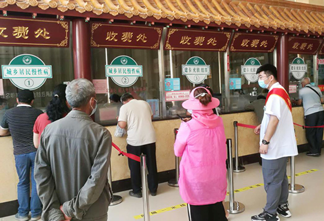 在严格做好疫情防控的基础上,进一步引导患者有序就诊,降低院感风险,减少人员聚集,减少交叉感染,志愿者们对患者进行宣教,不时提醒就诊患者保持安全距。