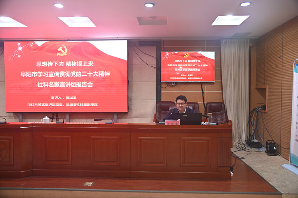 市社科专家宣讲团成员、市社科联副主席陈汉军从党的二十大报告的主要内容、深刻领会党的二十大的重大意义、准确把握党的二十大精神实质、迅速兴起学习贯彻党的二十大精神的热潮等方面,对党的二十大精神作了全面宣讲和深入讲解。与会同志认真聆听记录,一致认为此次宣讲报告紧扣实际、内容丰富,既有理论深度,又接“地气”,听后深受教育和启发,对党员干部深刻领会和准确把握党的二十大精神,更好贯彻落实中央和省委、市委决策部署,具有很强的针对性、指导性和启发性。(支琪皓 讲师组)