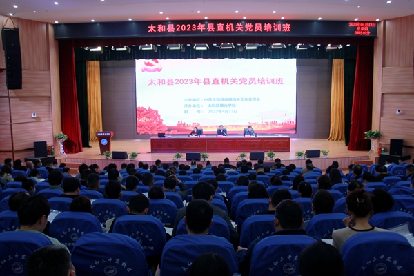 为深入学习贯彻党的二十大精神,切实激发广大县直机关党员发挥先锋模范作用,保持党员队伍先进性和纯洁性,4月10日至15日,县直工委在太和县曙光中心校报告厅连办两期党员培训班,县直工委书记王道峰出席开班仪式并作动员讲话,县直2014年来发展的757名党员参加培训。