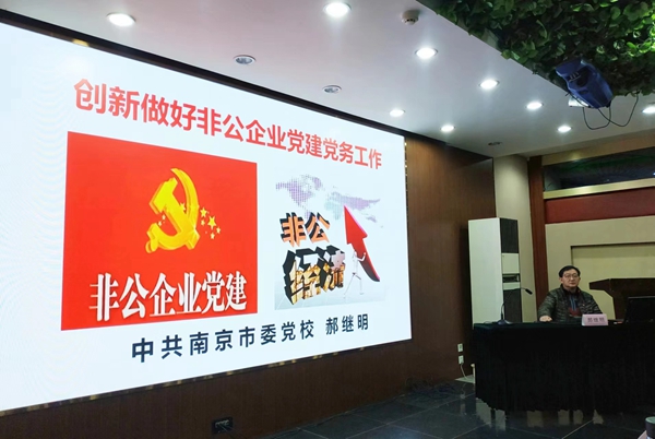 开班仪式结束后,南京市委党校教授为培训班全体学员授课,带领全体学员认真学习习近平新时代中国特色社会主义思想和党的二十大精神,与学员们一起讨论新形势下的非公企业党建创新。学员也登上讲台,分享心得体会和党建工作经验。