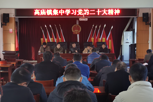丰富载体,深入人心,下好“宣传棋”,宣传好党的二十大精神。高庙镇组建宣讲团,深入各村、镇直各单位开展“思想传下去、精神提上来”学习宣传贯彻党的二十大精神宣讲活动,截至目前,全镇共组织开展党的二十大精神镇级宣讲3场、村级宣讲12场。同时,高庙镇组织镇村干部通过微信群、“学习强国”APP转发党的二十大精神学习资讯,并通过悬挂宣传条幅、电子屏刊播宣传标语、发放宣传明白纸等多种方式宣传党的二十大精神,进一步推动党的二十大精神家喻户晓、深入人心。