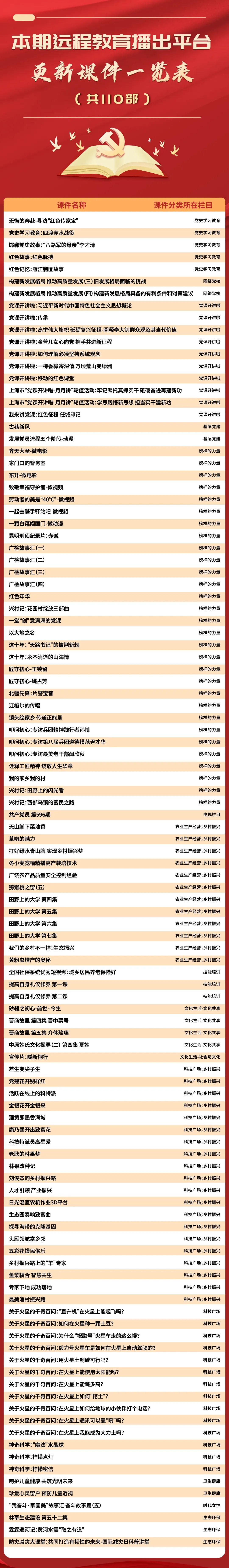 为进一步提升党员远程教育学用结合实效,帮助全省基层远程教育终端站点更便捷地掌握课件资源库内容,省委组织部党员教育中心通过安徽先锋微讯定期发布精品节目推荐以及最新上传更新节目单,请通过远程教育终端站点或安徽先锋网-先锋网视点播收看。