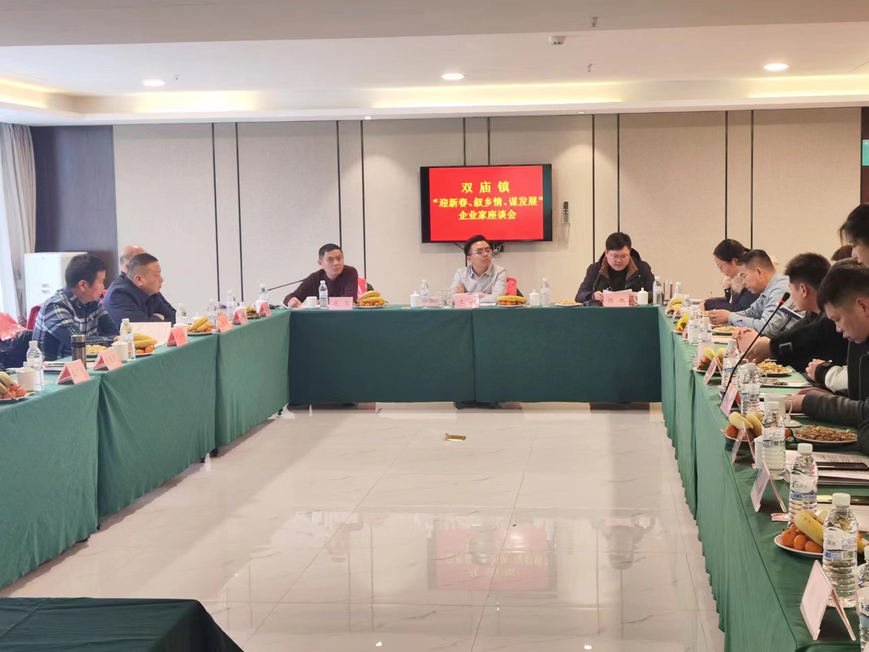 为谋划好2024年双庙镇经济与企业服务工作,搭建政企沟通平台,2月4日下午,双庙镇召开“迎新春、叙乡情、谋发展”返乡企业家座谈会。双庙镇党委书记王龙、镇长范飞、县招商投资促进中心主任陈旭及20余位来自各行各业的双庙籍成功人士代表齐聚一堂,共叙乡情、共谋发展、共话未来。