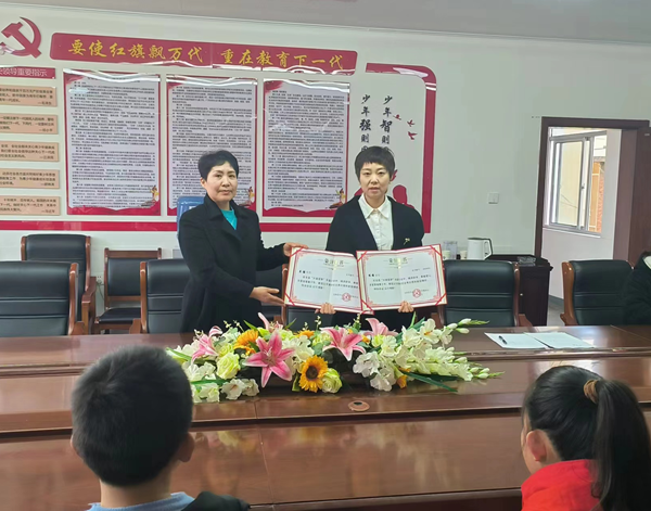 县关工委秘书长胡云霞主持并讲话,受助学生和家长参加。胡主任为爱心人士颁发荣誉证书,代表县关工委送上感谢和敬意。