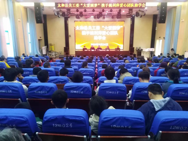 3月24日,太和县关工委“大爱圆梦”行动携手姚利萍爱心团队助学会,在旧县镇中心校举行,此次善款25.7万元,资助全县104名困难学生。知名爱心人士姚利萍、县关工委主任赵魁先后讲话。爱心团队和同学们进行了牵手对接交流。
