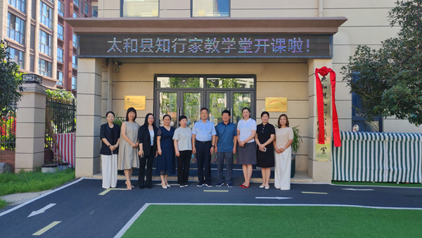 县关工委赵魁主任、县妇联李桂芳主席为太和县知行家教学堂揭牌。