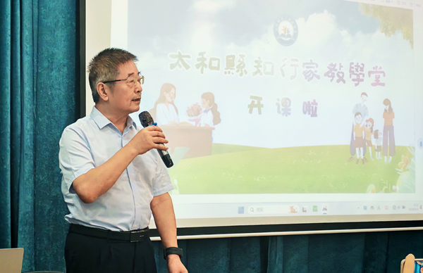 太和县关工委赵魁主任为揭牌仪式致辞,他指出,“知行家教学堂”是在太和县“和风”家庭教育品牌下设立的家教公益服务新平台,旨在致力于打造一个集学习、交流、实践于一体的家庭教育空间,围绕家长最关心的热点问题,邀请教育专家、学者、优秀教师通过讲座、研讨会、工作坊等多种形式,为家长们提供全面、系统、实用的家庭教育指导,帮助解决家庭教育中遇到的实际问题,共同为孩子们的全面发展保驾护航。为促进我县家教事业发展探索新的路径。