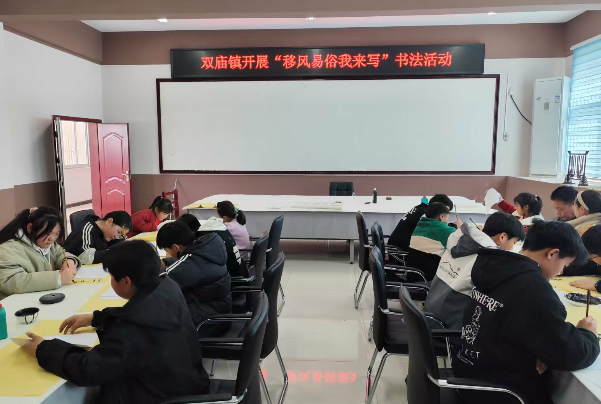 双庙镇开展青少年“移风易俗我来写”主题书法活动