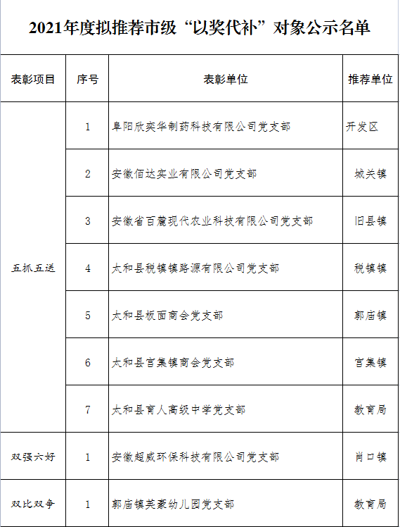2021年度拟推荐市级“以奖代补”对象公示名单