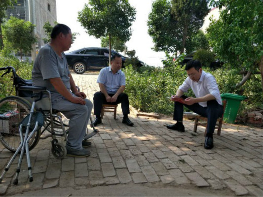 张仲弢随机走访了贫困户王怀强,关心地问起其家庭收入和生产生活情况,了解驻村工作队、帮扶责任人、村支部书记到家走访帮扶情况,征求群众对基层平安建设工作意见建议。